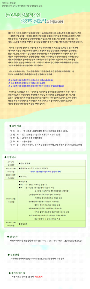 농어촌형 사회적기업 활성화 포럼 -농어촌형 사회적기업 중간지원조직의 현황과 과제