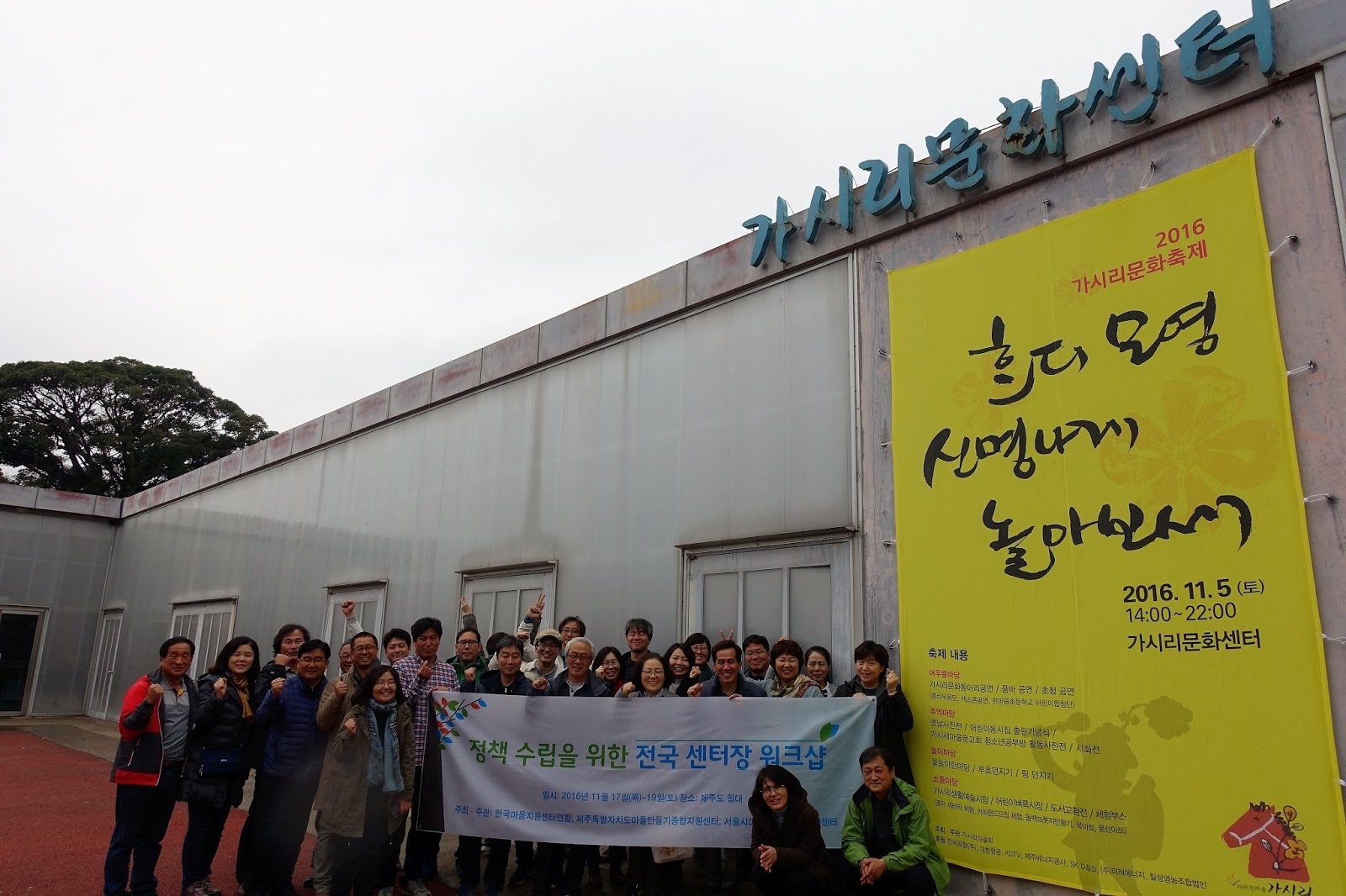 지난 2016년 11월 17일부터 19일, 2박 3일의 일정으로 "2017년 정책수립을 위한 전국 센터장 워크숍"을 제주특별자치도 마을만들기종합지원센터 및 가시리 마을에서 진행하였습니다.