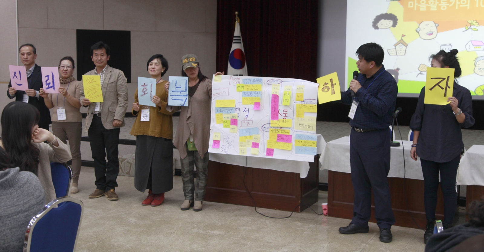 2부에서는 각 테이블로 소규모 토론이 진행됐다. 8개 세션으로 마을과 학교, 주민참여예산, 마을주민간의 갈등, 마을과 행정 간의 소통, 주민 참여, 중간지원조직 등, 다채로운 주제로 구성되어 있었다. 필자는 중간지원조직에게 바란다라는 주제로 논의가 진행되는 토론에 참여했다.