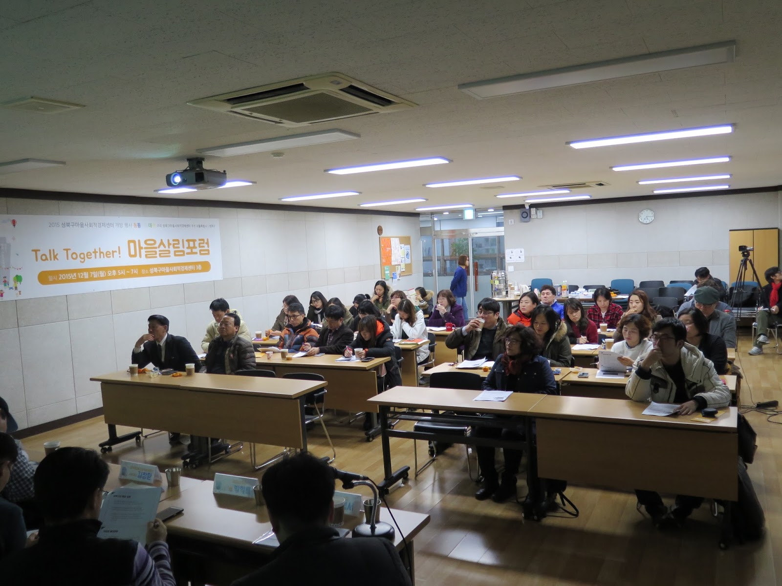 12월 7일, 2015 성북구마을사회적경제센터 개방 행사가 성북구마을사회적경제센터에서 열렸다. 올해 초, 처음 센터협의회 활동을 하면서 마을 현장에 관심을 가지고, 책을 통해 배워갈 때가 있었다. 이때 인상 깊게 남았던 사례가 성북구 마을공동체 운동 중, 장수마을 사례였다. 성곽 마을로 근린 문화재 존재로, 재개발의 제한이 있어, 지역공동체가 재개발 대신 도시재생을 가지고, 마을만들기를 해온 사례였다. 특히 쪽방촌에 가까운 빈곤지역에 활동가가 들어가서, 지역주민과 함께 활동하며, 지역주민들의 역량과 필요를 고려해, 동네목수라는 마을기업까지 만드는 과정은 정말 귀감이 되었다.