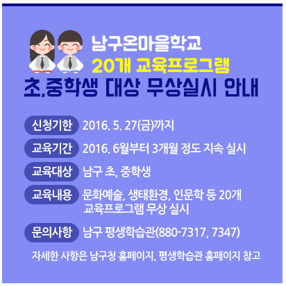 ◎인천 남구 : <온마을학교> 접수마감 (~5/27)