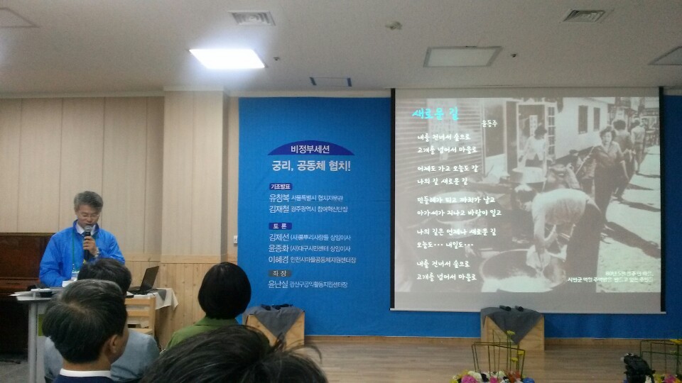 전국의 마을활동가들과 기초단체장들 그리고 마을활동에 관심을 가지고 있는 지역주민들이 20일 광주, 광산구공익활동지역센터, 한자리에 모였습니다. '전국 마을론(論)컨퍼런스-오월광주, 마을을 논하다'에서 마을에 대한 다양한 담론들과 공유하는 장이 펼쳐졌기 때문입니다.