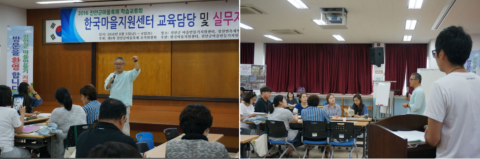 이번 직무연수는 진안군 마을축제 일정과 함께했습니다. 축제준비로 바쁜 와중에도 직무연수를 위해 수고해주신 진안군 마을만들기지원센터의 강신욱 센터장님과 담당자 여러분의 인사말로 직무연수가 시작되었습니다.