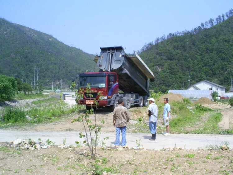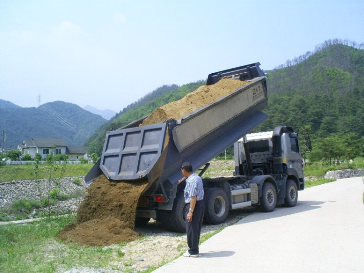 산계1리 참살기 마을 만들기 추진 위원회는 화단및 소원의길 조성 사업에 쓰일 마사토를 반입하였습니다