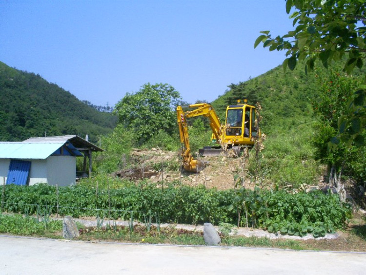 도로 공사의 포클레인 장비 지원으로 1차 정지 작업을 완료 하였고 쉼터에 쓰일 자재를 구입한 후에