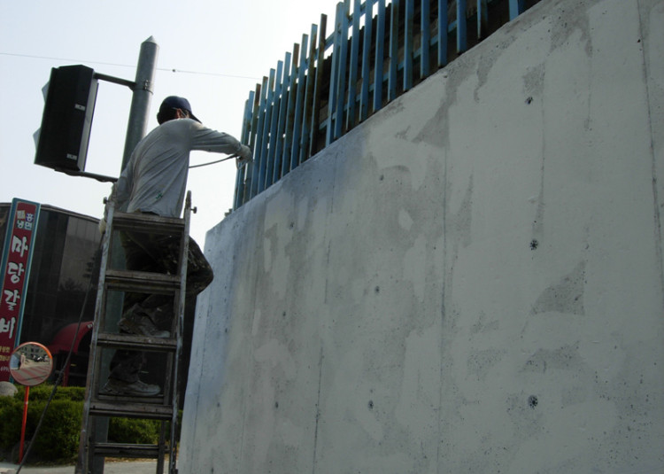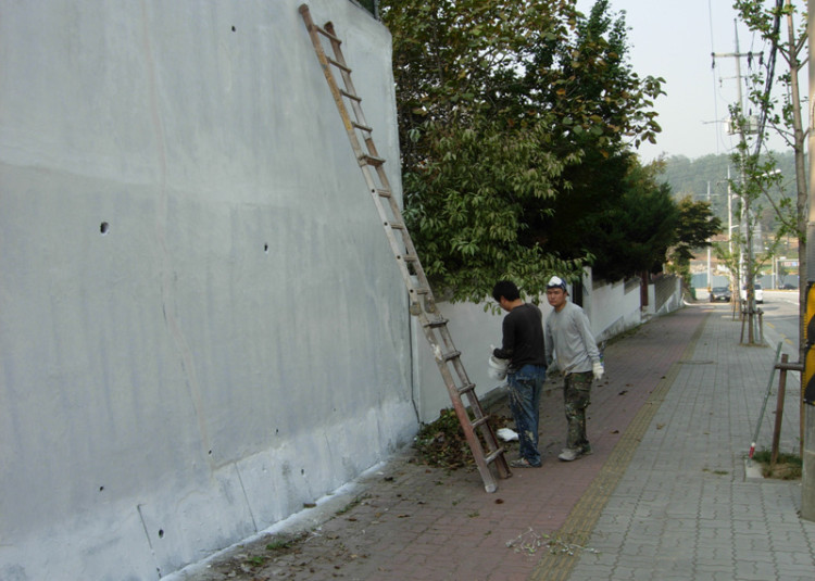 20일 오전 부터 교2동 벽화 대상 옹벽에 전처리 작업인 바탕보수 작업과 푸라이머 시공이 진행되었습니다.