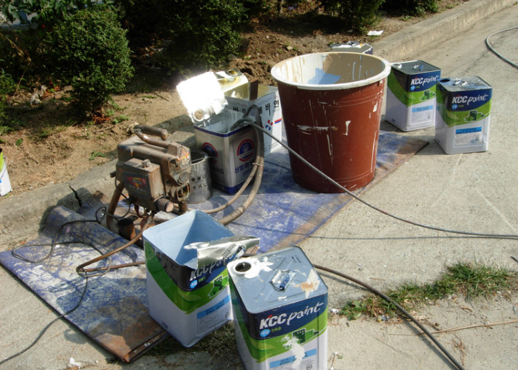 먼저 벽에 갈라진 틈을 매우는 작업을 한후, 벽면으로부터의 수분과 불순물을 차단하고, 벽체와 뒤에 도장되는 도료와의 접착성을 증대시키기 위하여 푸라이머 시공이 진행되었습니다.