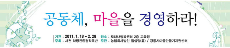 공동체, 마을을 경영하라 - 사천 하평친환경작목반 교육을 시작합니다.