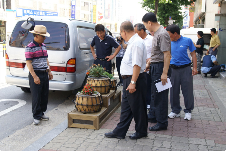여러차례의 주민회의를 통해 인도변 적치물을 치우고 그곳에 작은 화분들을 만들고 주변을 정리하는 작업들이 진행되었습니다. 진행과정에는 수없는 설득이 진행되었다고 합니다.