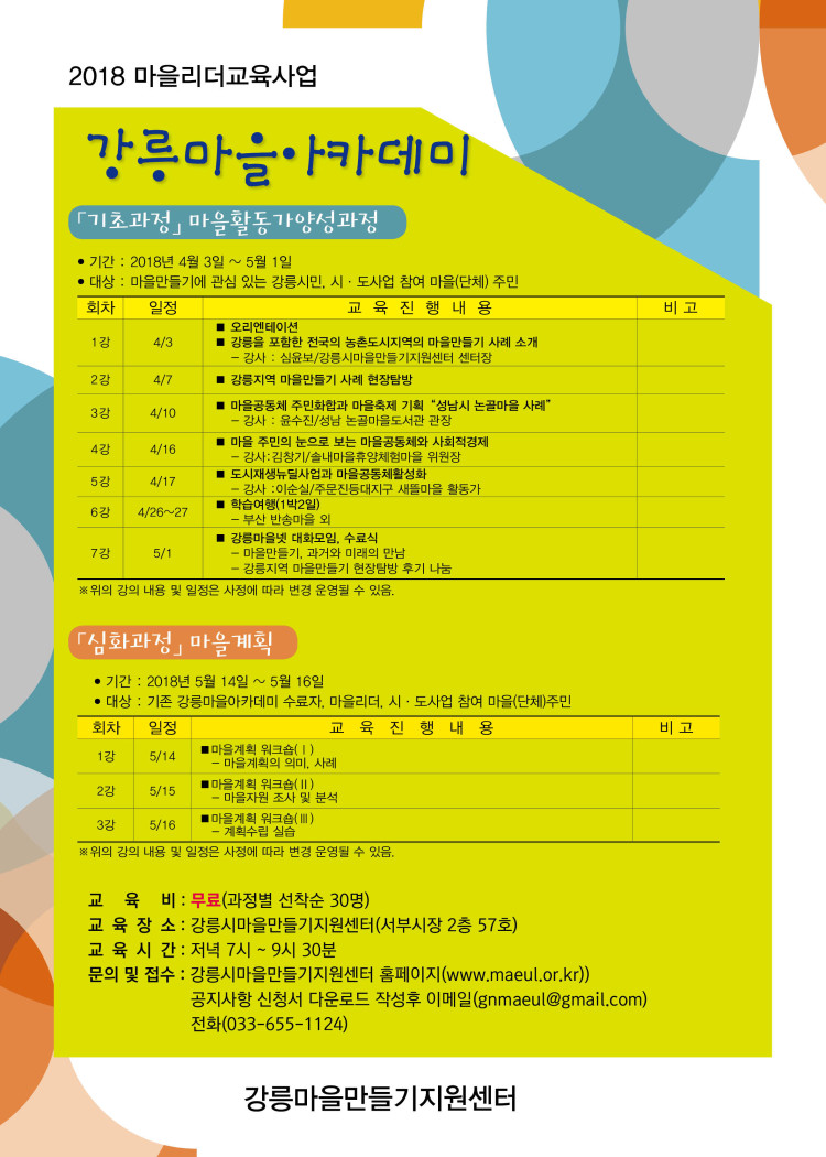 2018 강릉마을아카데미가 4월 3일부터 시작~!!됩니다.