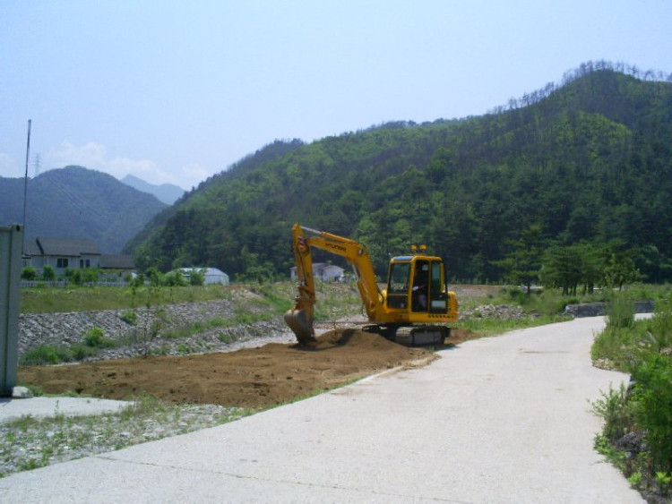 도로 공사의 포클레인 장비 지원으로 1차 정지 작업을 완료 하였고 쉼터에 쓰일 자재를 구입한 후에