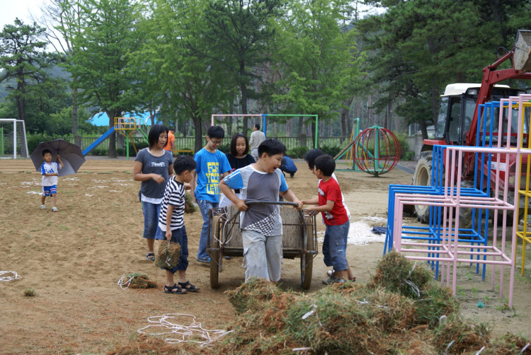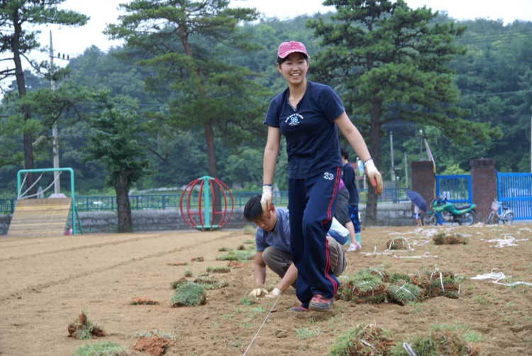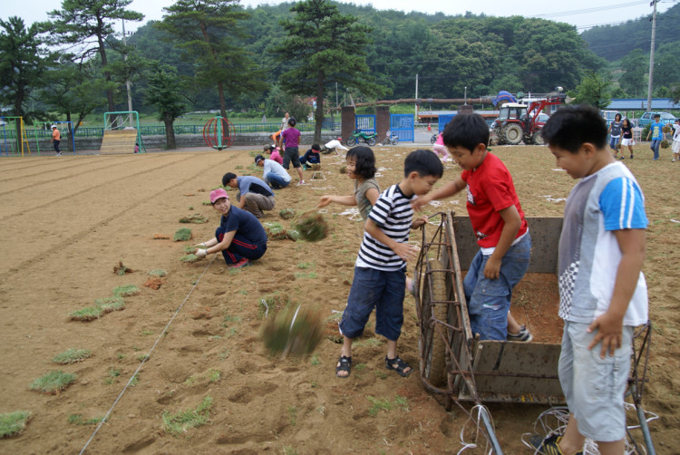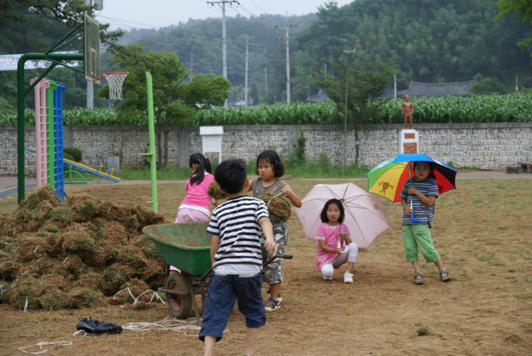 초등학교 잔디밭이 거의 완성되어 가는 중이네요