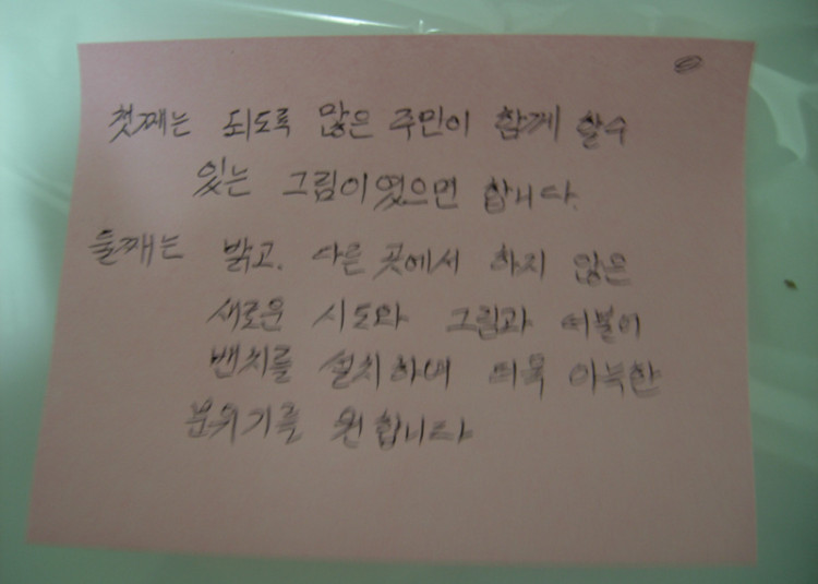 이날 모인 주민들은 벽화가가 그려지는 것에 대해서 모두가 찬성하면서 그려질 벽화에 대한 많은