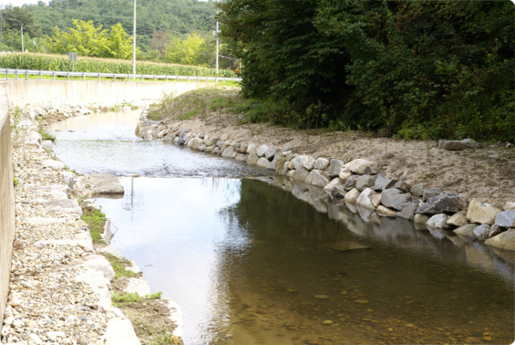 위촌2리 하천으로 내려가는 계단이 만들어지고 있습니다.