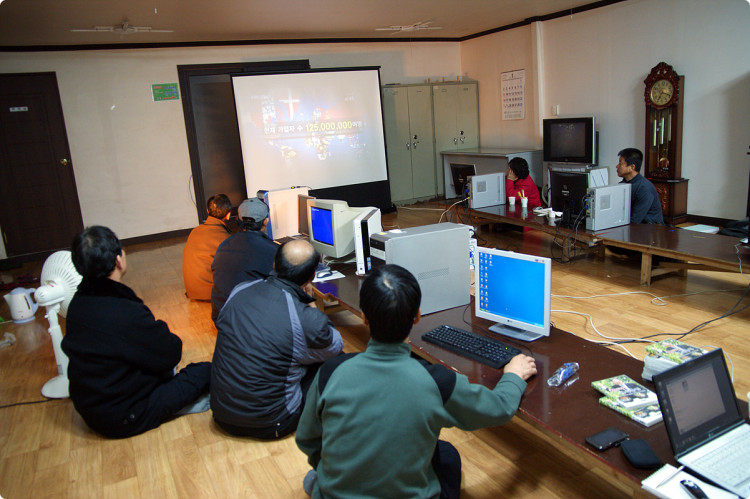 마을 디지털 공부방에 있는 다섯대의 컴퓨터와 각자 집에서 들고 오신 컴퓨터를 회관에 셋팅하고 어제(1월 10일) 그 첫모임을 가졌습니다.