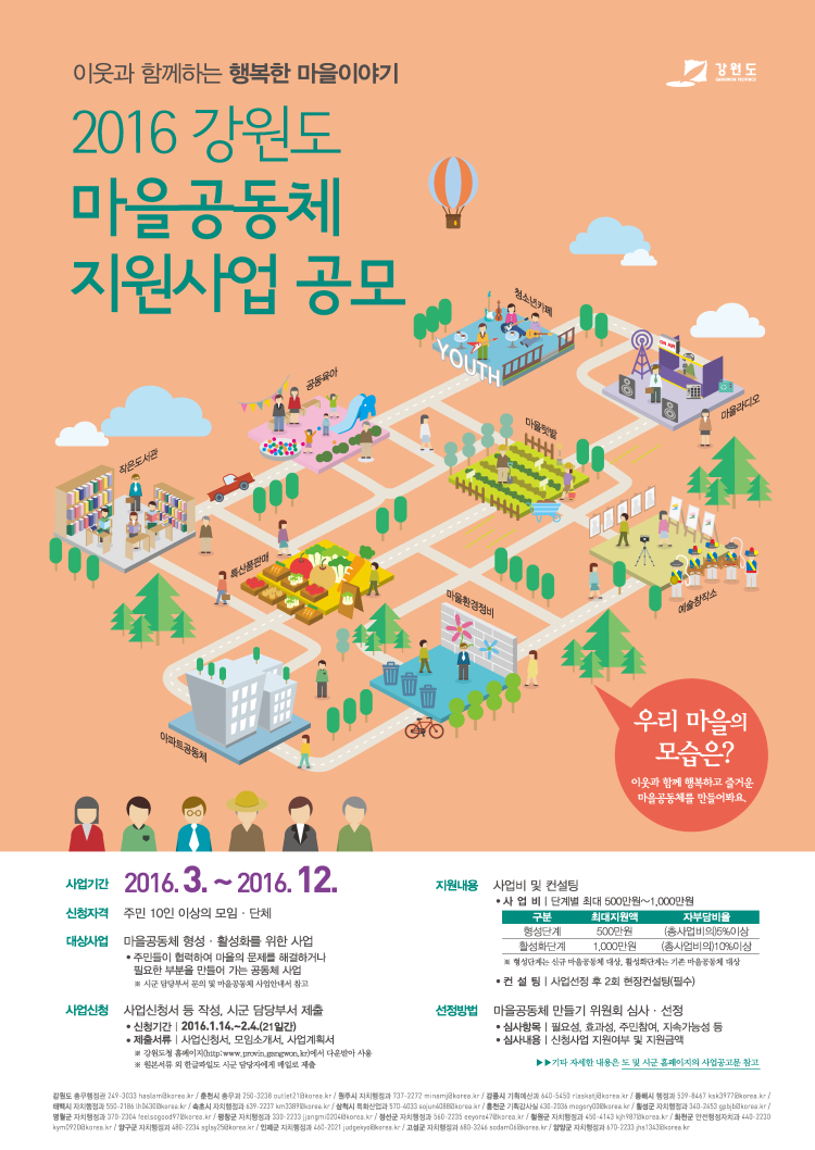 강원도에서 진행하는 2016년도 마을공동체 지원사업 공모