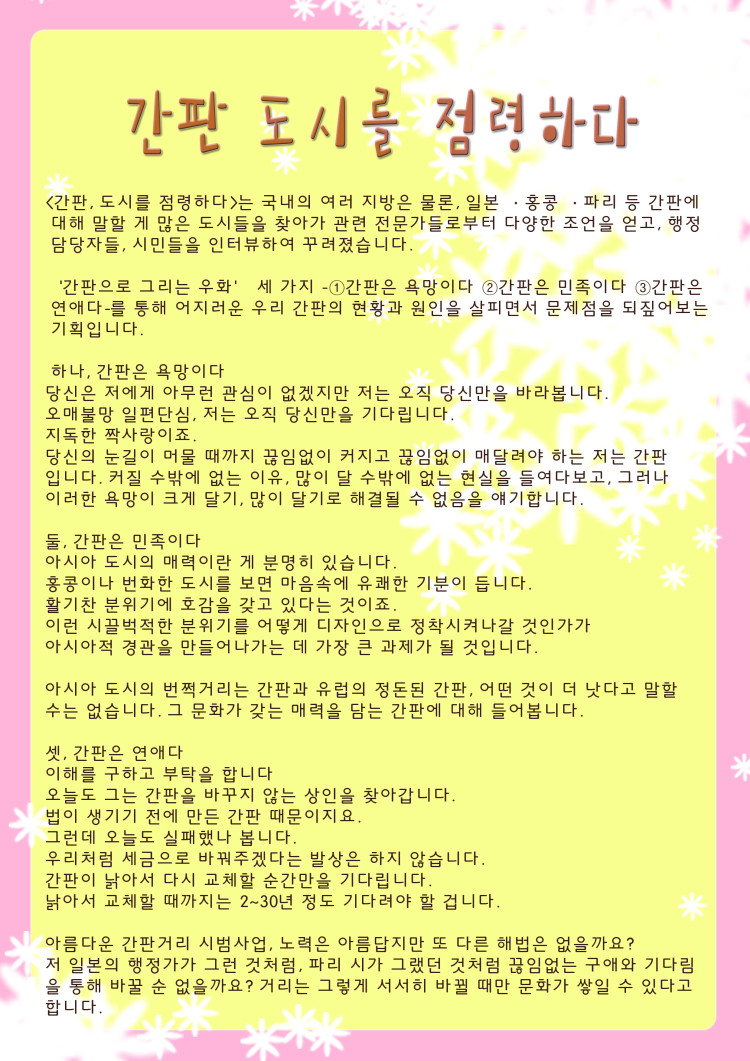 이번 상영작 : 간판 도시를 점령하다 일 시 : 2009년 4월 09일 (목) 오후 7시